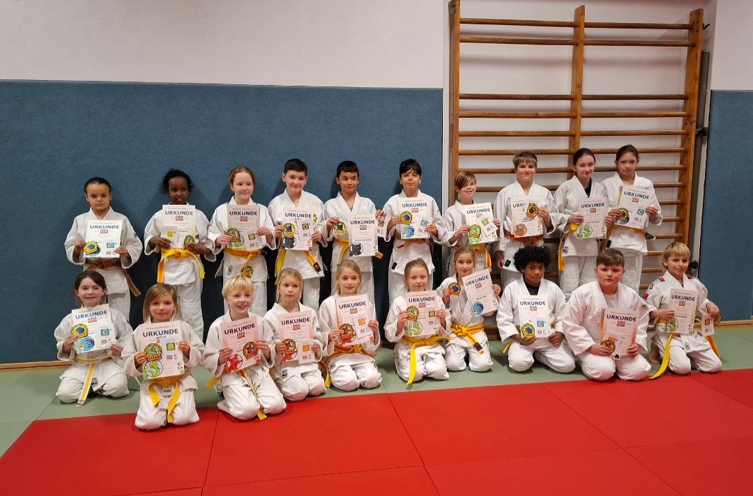 Auch im Jahr 2025 nahm die Judo Gemeinschaft Uelzen an der Aktion „SAFARI“ vom Deutschen Judo Bund teil. Für alle Jungen und Mädchen bis ca. 12 Jahren ist die Breitensportaktion seit Jahrzehnten ein fester Bestandteil des DJB. Entsprechend der erreichten Leistungsklasse erhalten die Teilnehmer/innen ein Stoffabzeichen, zum Aufnähen auf den Judoanzug, sowie eine Urkunde und einen Sticker. Je nach Punktzahl, die sich aus drei Teilen zusammensetzen, können die SAFAR-Tiere nach den Gürtelfarben errungen werden. Am Anfang steht das Gelbe Känguru, dann steigert man sich je nach erreichter Punktzahl zum Roten Fuchs, Grüne Schlange, Blauer Adler, Brauner Bär. Wer die meisten Punkte bekam, konnte sich über den „Schwarzen Panther“ freuen. Für den kreativen Teil mussten die Kids ein Bild malen. Thema war die Nachtwanderung der JG Uelzen im November. Dazu kommt der leichtathletische Teil. Alle hatten Spaß beim Wettbewerb: Judogürtel Weitwurf, Weitsprung aus dem Stand und ein Hindernislauf auf Zeit, der es in sich hatte. Das japanischen Judo-Turnier mit Trostrunde war eine spannende Angelegenheit. Einige von den jüngsten Judoka waren noch nie auf einem Turnier und sammelten so ihre ersten Erfahrungen. Im Poolturnier in gewichtsnahen Gewichtsklassen startete jeder gegen jeden. So konnten man viele Punkte erkämpfen. Die Jury der JG Uelzen hatte es nicht leicht. Alle Judoka gaben ihr Bestes, und wollten so viele Punkte wie möglich erreichen. Oft waren die Pluspunkte ausschlaggebend. Die bekam man, wenn man schon einmal an der SAFARI teilgenommen hatte. Rolf Muhsik, erster Vorsitzende und Übungsleiter der Kids ließ es sich nicht nehmen die Siegerehrung persönlich vorzunehmen. Überglücklich nahmen alle Judoka ihre Urkunden, den Sticker und vor allem das Stoffabzeichen entgegen. Besonders freuten sich über den „Schwarzen Panther“ Artjom Kirst und Rashid Aminov. Fest stand für alle, in diesem Jahr sind wir wieder dabei! Hier die Einzelergebnisse: Gelbes Känguruh: Amira Abdulrashid, Alya Elkhatib, Myriam Hachicha. Roter Fuchs: Somya Elkhatib, Amar Gill, Rosalie Muhsik, Charlotte Muhsik, Thore Mordt, Mats Sauter. Grüne Schlange: Safiia Aminova, Juri Block, Cataleya Petrotschenko, Jonathan Platzke, Kathleen Smola, Linn Smola, Sofia Stürzebecher. Blauer Adler: Elion Bajrami, Luesa Bajarmi, Charlotte Bertling, Joshua Brand, Viktoria Dosmakanov, Annelie Muhsik. Brauner Bär: Mark Leon Hövermann. Schwarzer Panther: Artjom Kirst, Rashid Aminov