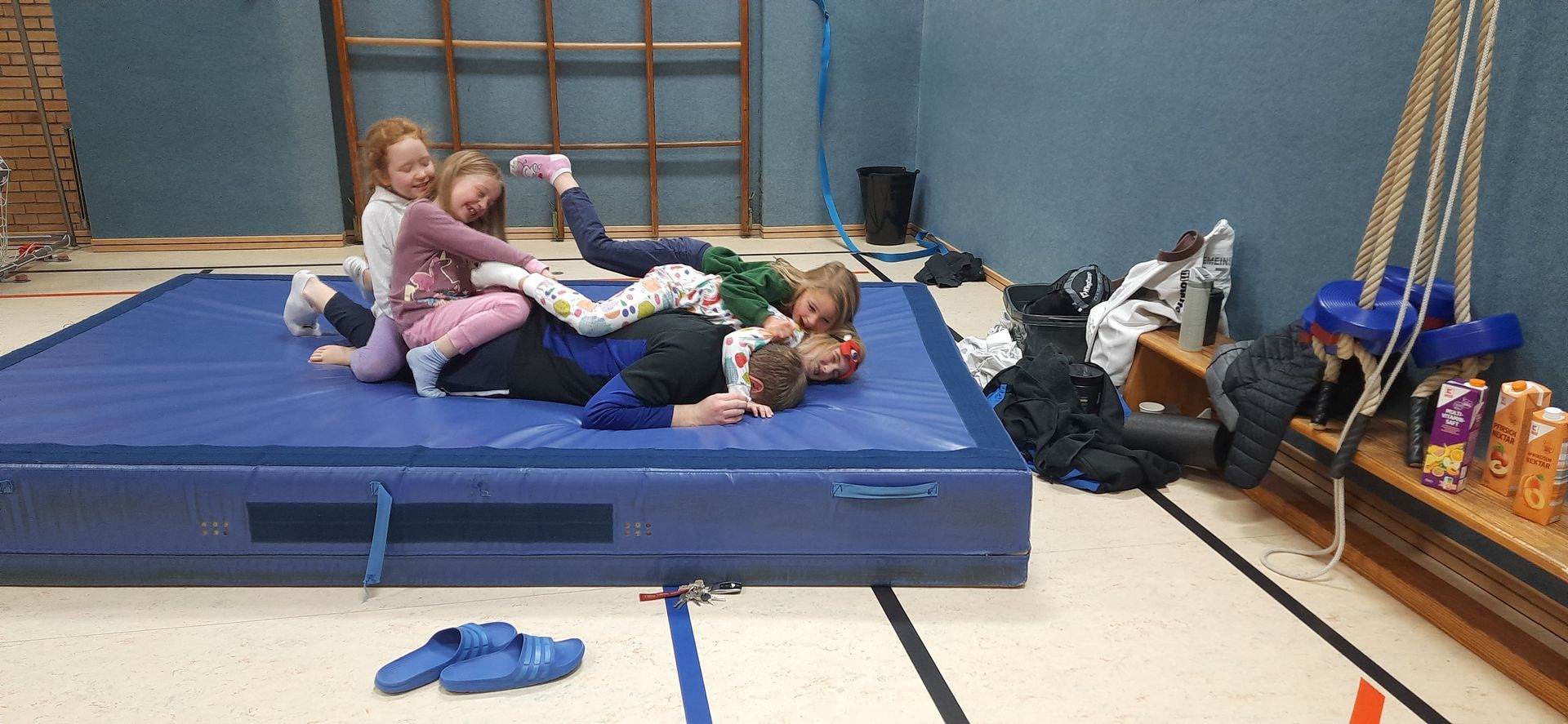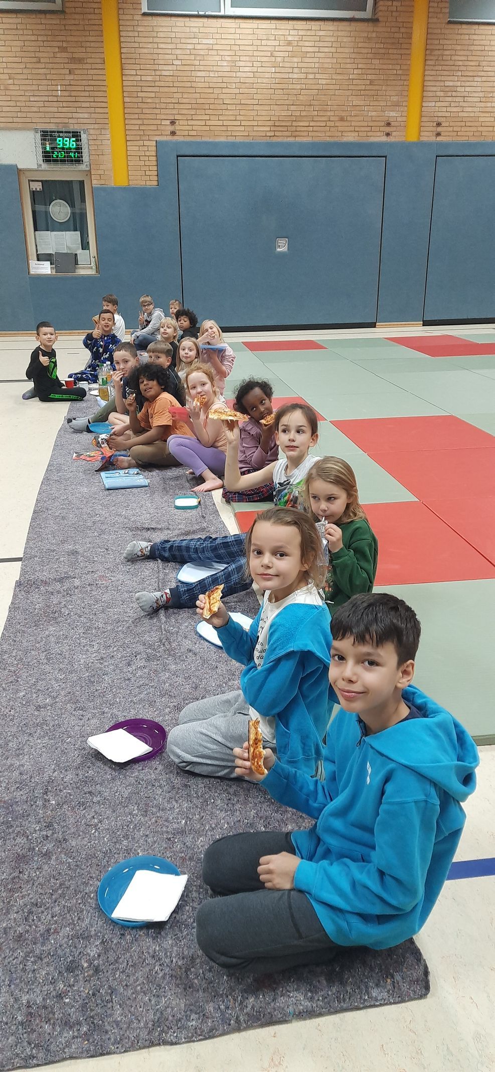Zum Abendessen gab es Pizza und anschließend konnten die Judoka noch ausgelassen in der Turnhalle toben und spielen.