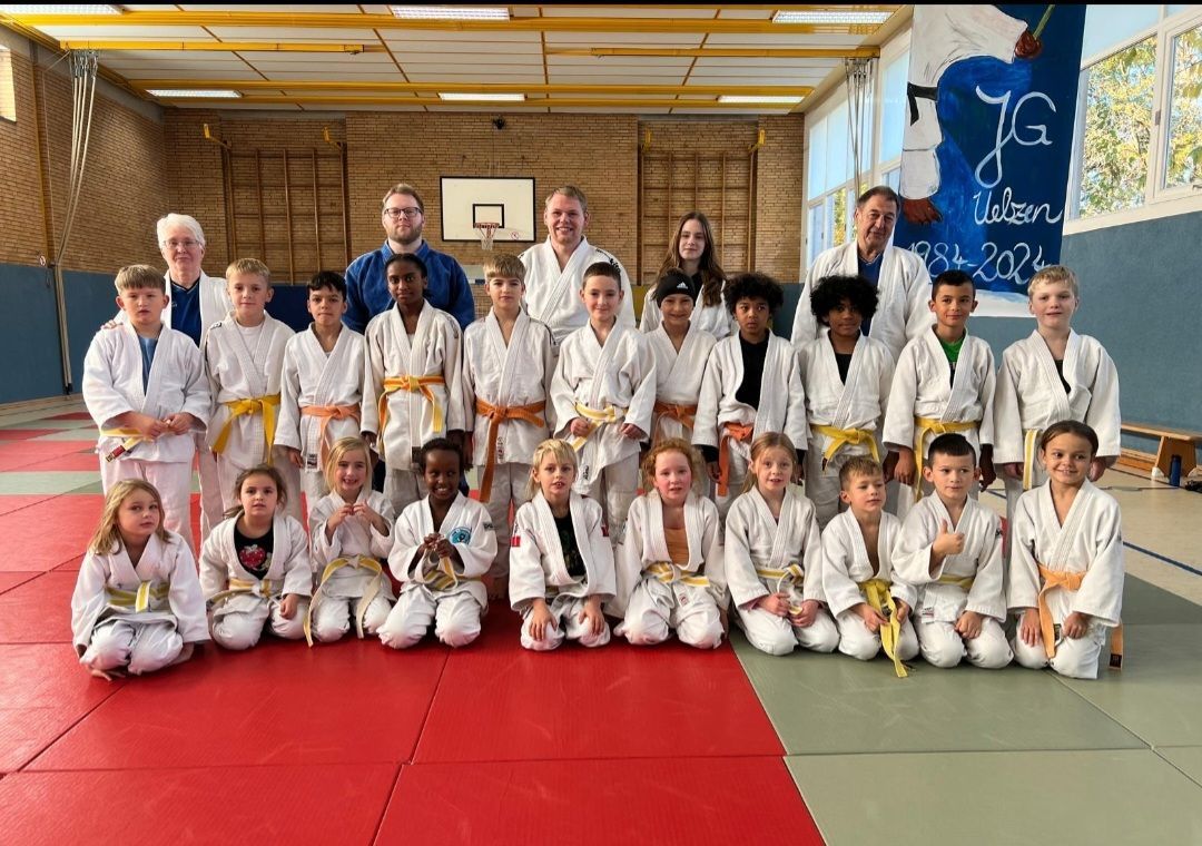 In der Judo Gemeinschaft Uelzen war in den letzten Wochen vor den Ferien viel los. Fleißig übten die Nachwuchsjudoka mehrmals wöchentlich für die anstehende Gürtelprüfung. Vom Gelb Gurt (7. Kyu-Grad-Anfängerbereich) bis zum braunen Gürtel (1. Kyu-Grad) waren alle eifrig dabei. Es war auch für die Übungsleiter eine Herausforderung, denn 37 Prüflinge zu unterrichten in sechs verschiedenen Gürtelfarben ist schon eine Aufgabe. Zur Judo Grundausbildung, und der nächsten Graduierung bis zum nächsten Gürtel gehören immer Fallen, Werfen und Haltegriffe. Zum Beispiel Falltechnik rückwärts, seitwärts und vorwärts. Die Judoka dürfen Würfe ihrer Wahl bei der Prüfung zeigen. Die Anzahl der Wurftechniken richtet sich nach dem nächsten Gürtel. Es muss aber eine Eindrehtechnik zur Hauptseite/Gegenseite und eine Fußtechnik dabei sein. Dazu kommen noch viele verschiedene Haltegriffe. Ein abschließendes Randori (Übungskampf) rundet jede Prüfung ab. Für den Blauen und Braunen Gürtel (2. und 1. Kyu) kommen dann noch Hebeltechniken und Würgegriffe dazu. Sie müssen aus verschiedenen Positionen vorgeführt werden müssen. Unter den Augen der Prüfer Rolf Muhsik (JG Uelzen) und Thomas Ordon (VFL Suderburg) bestanden alle Judoka mit Bravour. 7. Kyu – Gelb Gurt: Henriette Bettray, Viktoria Dosmakanov, Somya Elkhatib, Tawhid Farzam, Myriam Hachicha, Jamie-Lee Herholz, Luis Ifland, Lisa Ivanov, Willy Meyer, Thore Mordt, Rosalie Muhsik, Cataleya Petrotschenko, Linn Smola, Hannes Stülp, Mila Viebrock. 6. Kyu – Gelb/Orange Gurt: Amira Abdulrashiid, Mahmoud Albosen, Rashid Aminov, Safiia Aminov, Juri Block, Joshua Brand, Mael Kim, Artjom Kirst, Charlotte Muhsik, Annelie Muhsik, Jonathan Platzke, Johannes Siemon, Leo S. Simon, Sofia Stürzebecher. 5. Kyu – Orange Gurt: Nuru Abdulkarim. 4. Kyu – Orange/Grün Gurt: Elion Bajrami, Luesa Bajrami, Amar Gill, Mark Leon Hövermann. 2. Kyu – Blau Gurt: Marcel von Prondzinski. 1. Kyu – Braun Gurt: Heleen Burgschat, Leon Schimanski.