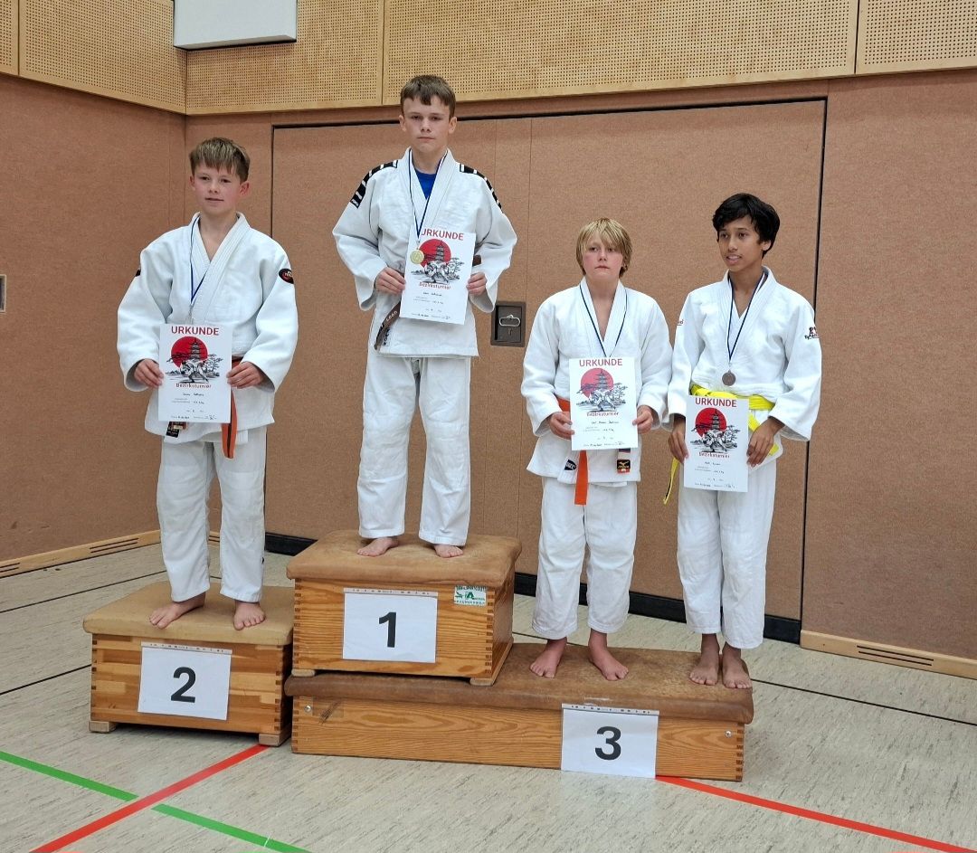 Überzeugen konnte mit vier vorzeitigen Siegen in der U15 Leon Schimanski mit der Goldmedaille (-47kg).